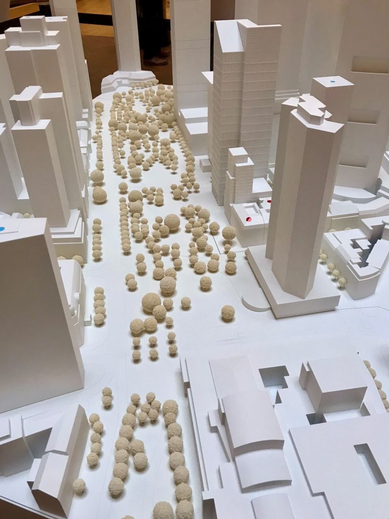 Ein Architektenwettbewerb für das neue spektakuläre Hochhaus Kaiser Karree an der Ecke Kaiserstraße 30 und Neue Mainzer Straße 31 soll die endgültige Gestaltung des künftigen Hochhauses festlegen. Der Wettbewerb soll noch in diesem Jahr von den Immobilienunternehmen Tishman Speyer und Commerz Real ausgeschrieben werden. Für die Machbarkeitsstudie des Hochhauses war das Planungsbüro Albert Speer und Partner verantwortlich. Laut Presseberichten wurden bereits zwölf nationale und internationale Architekturbüros eingeladen. Die Architekten müssen innovative Lösungen für das denkmalgeschützte Gebäudeensemble entwickeln, denn das Hochhaus soll sich nach unten verjüngen und erst in einer Höhe von rund 60 Metern seine volle Breite erreichen. Geplant ist, dass dieser Turm wie ein umgedrehter Bleistift aus dem denkmalgeschützten Gebäude Kaiserstraße 30 ragt und dabei sei das Ziel, den Turm behutsam in die denkmalgeschützten Bestandsbauten zu integrieren. Das Vorgehen ist mit Stadtplanung und dem Denkmalschutz abgestimmt. Zudem soll das Hochhaus nicht nur eine flache Kante haben, sondern laut Presseberichten einen markanten und einzigartigen Abschluss erhalten.