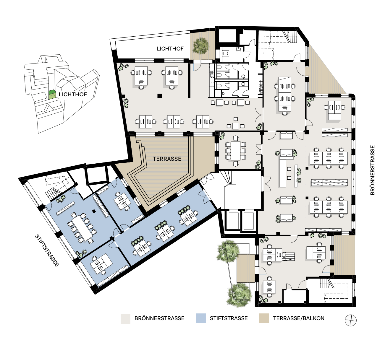 | 465m2 Büro - Grundriss | 6. OG | Q2 2025 |