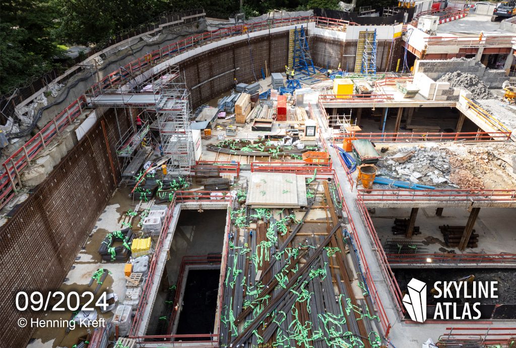 April 2024: Die Gründungsarbeiten und der Baugrubenverbau sind seit abgeschlossen, während die Aushubarbeiten für die Deckelbauweise laufen. Der erste Deckel U20 wurde Ende Januar 2024 fertiggestellt. Der zweite Deckel U40 soll Ende April 2024 fertiggestellt werden. Die Fertigstellung der Bodenplatte soll im Herbst diesen Jahres erfolgen.