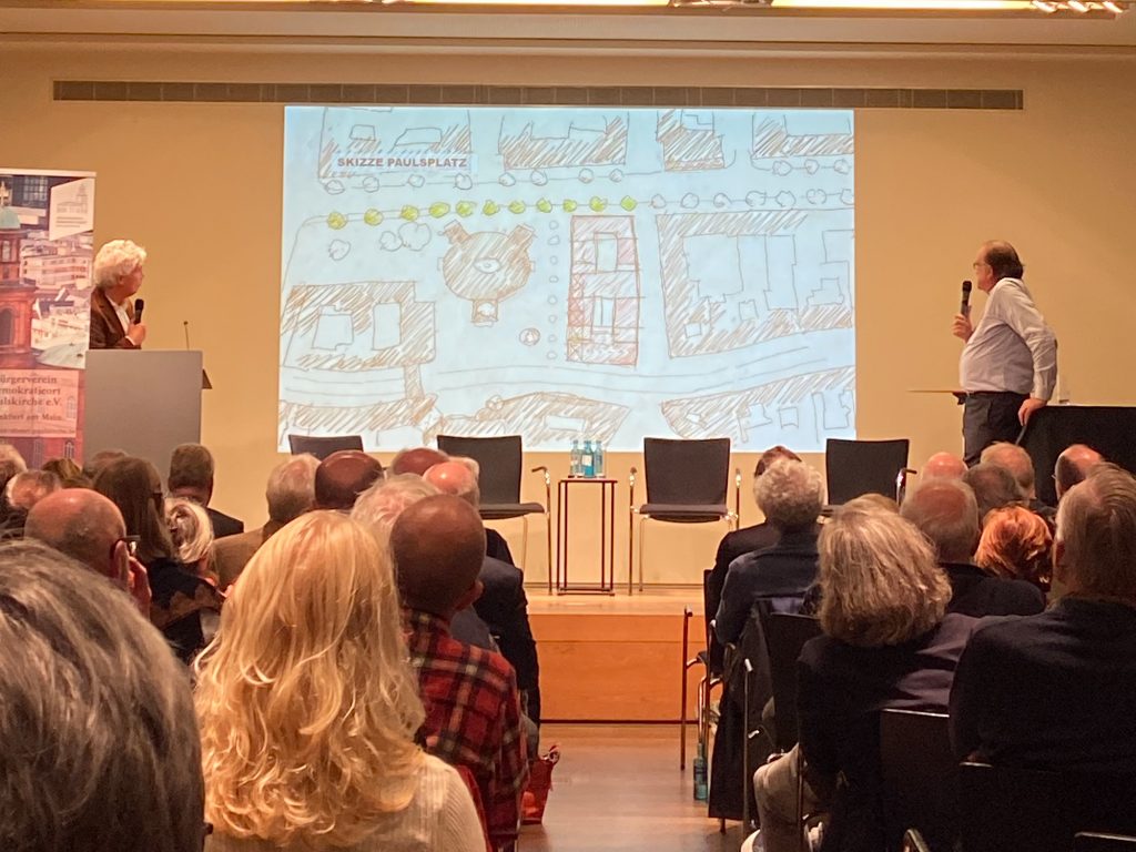 Die vielen kritischen Fragen des Publikums der gestrigen Diskussion, die von Carsten Knop von der F.A.Z. moderiert wurde, drehten sich um die Auswirkungen einer solch engen Bebauung bezüglich der Erwärmung und der fehlenden Begrünung der Innenstadt. Zudem wurde bemängelt, dass mit solche einer Bebauung ein wichtiger Versammlungsort für Demos und für den Weihnachtsmarkt wegfalle und die jetzige Lösung mit den Platanen das Ergebnis eines Wettbewerbs aus den 1980er Jahren sei. Zudem sieht der Koalitionsvertrag vor, dass der Paulsplatz nicht so zugebaut werden dürfe, dass dort keine Versammlungen mehr stattfinden können.