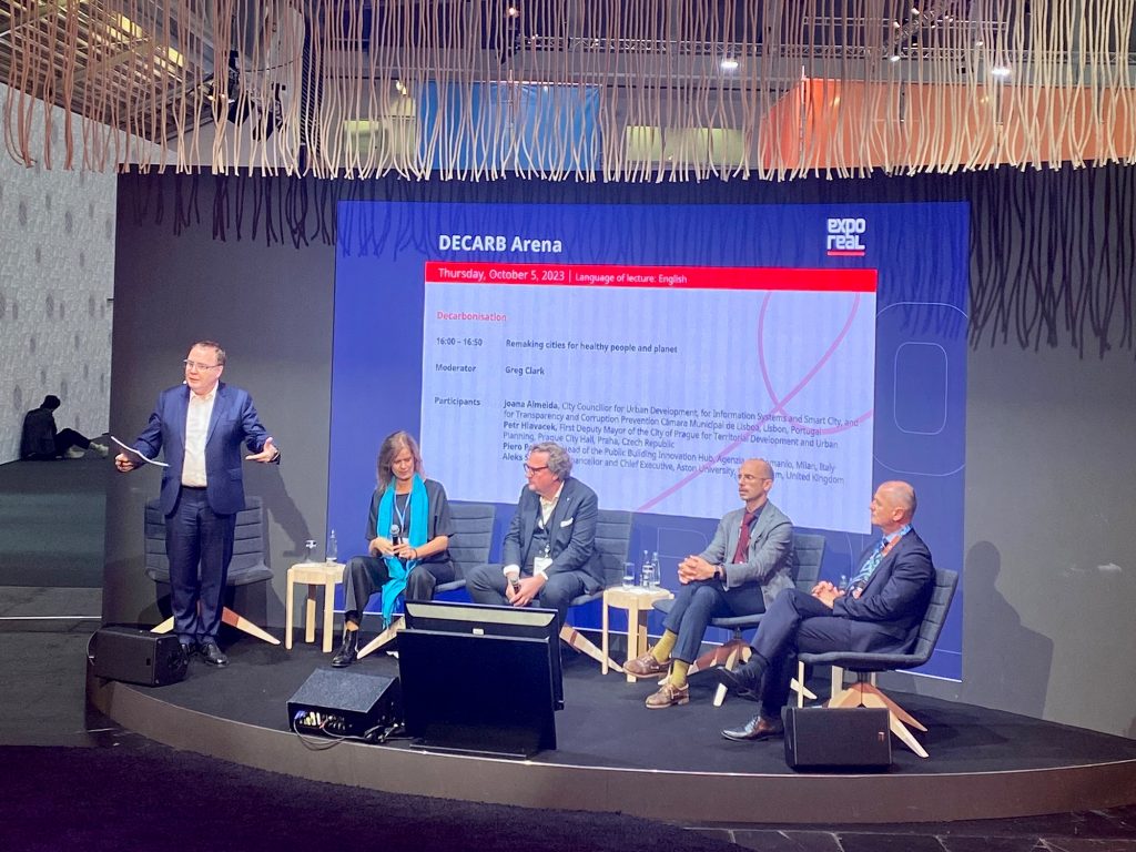 Als letztes besuchten wir eine Veranstaltung, welche von Prof. Greg Clark, Stadtplaner und Innovator, moderiert worden ist. Diese handelte sich um das Thema „Umgestaltung der Städte für gesunde Menschen und einen gesunden Planeten.“ Vor allem die Verbindung zwischen der Gesundheit der Menschen und der Gesundheit des Planeten hat der Moderator bei seinem Vortrag thematisiert. Im Anschluss berichteten vier Sprecher aus Portugal, Tschechien, Italien und England von Projekten aus ihrem Land, welche zu einer besseren und gesünderen Stadt führen sollen.
