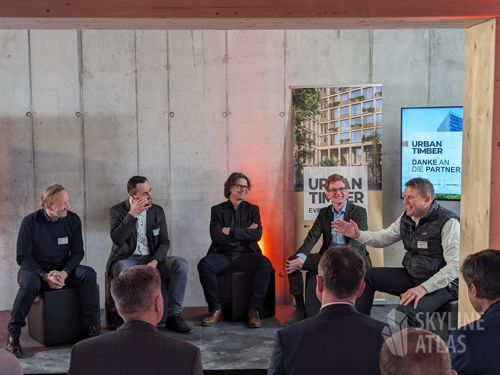 Einen spannenden Blick hinter die Kulissen des Timber Pioneer ermöglichte die gestrige Fachkonferenz, die von BUILTWORLD GmbH aus München und der Koalition für Holzbau im 6. Stock des Gebäudes mit Blick über die Europa Alle, organisiert wurde.