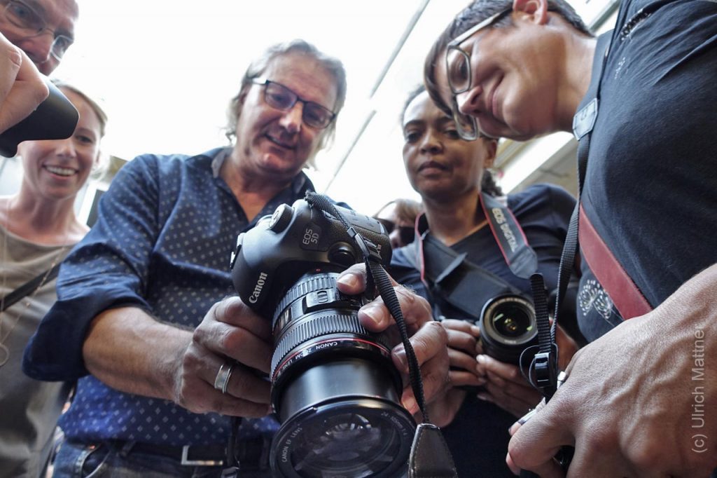 Ulrich Mattner erklärt während des Fotokurses dann auch die Tricks und Kniffe, wie man die besten Ergebnisse aus Fotokamera oder Handy holt. Ulrich Mattner ist ein Profifotograf aus Frankfurt, der aus namhaften Medien und Reportagen bekannt ist. Ledendär sind auch seine Führungen durch das Bahnhofsviertel.