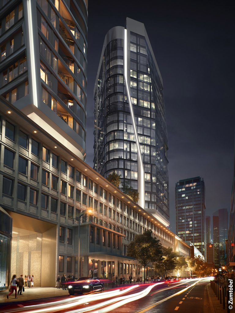 Als Hauptlieferant und Lichtpartner stattet Zumtobel allein die zwei Bürotürme mit rund 15.000 Leuchten aus. Die besondere und herausstechende Architektur der vier Türme im Bankenviertel, welche von dem renommierten niederländischen Architekturbüro UNStudio stammt, wird an der Fassade durch speziell entwickelte Sonderleuchten in Szene gesetzt. Zudem werden sämtliche Foyer-Bereiche durch Lichtinstallationen beleuchtet. Insgesamt befindet sich das Auftragsvolumen des Projektes im hohen einstelligen Millionenbereich.