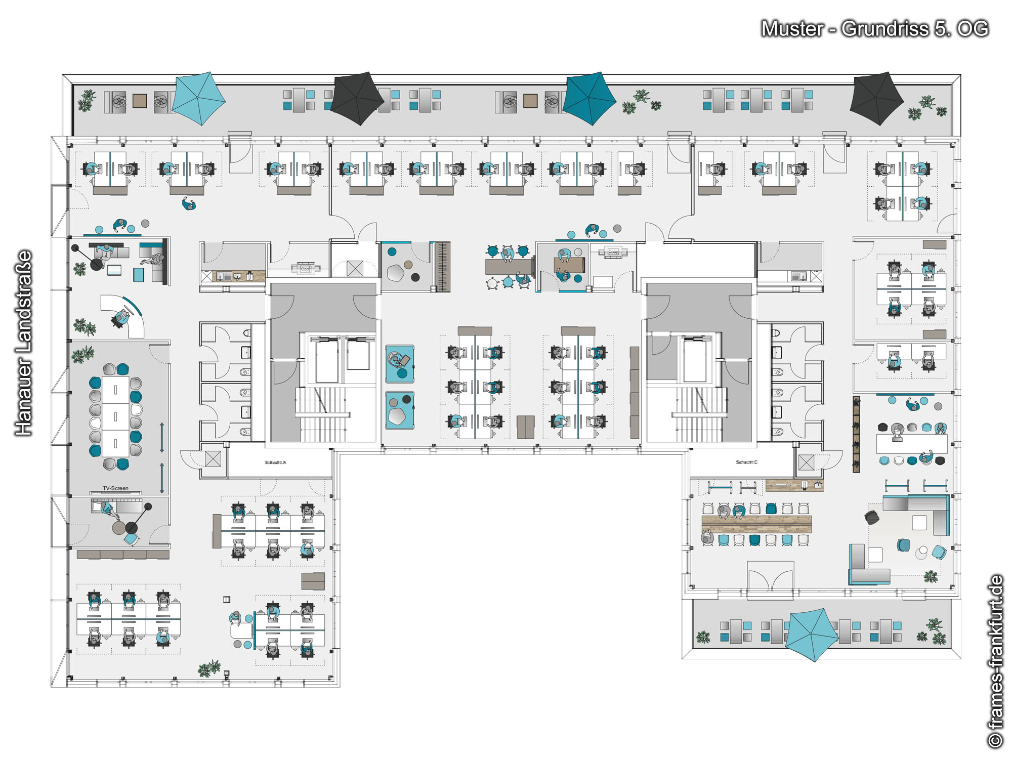 | 1.052m2 Büro- teilbar ab - 307m2 - Grundriss | 5. OG | Auf Anfrage | |