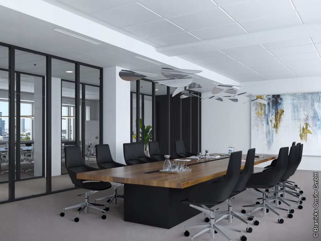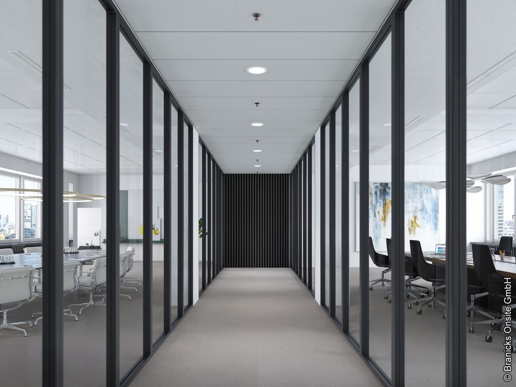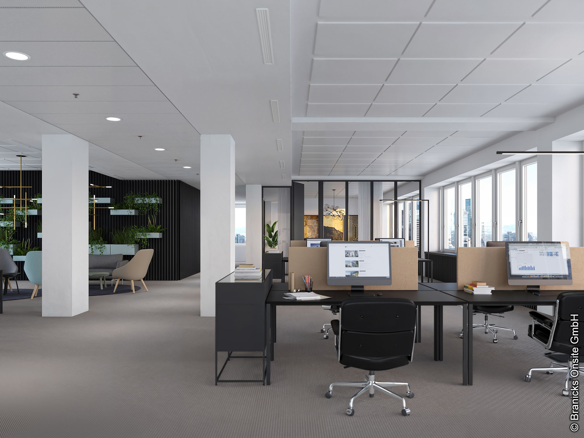 Die Mietflächen bestehen überwiegend aus flexibel teilbare Büroflächen mit Deckenhöhen zwischen 2,85 und 3,25 Metern. Die Raumaufteilung lässt sich an unterschiedliche Nutzungsanforderungen anpassen und ermöglicht sowohl klassische Bürokonzepte als auch offene Arbeitswelten.