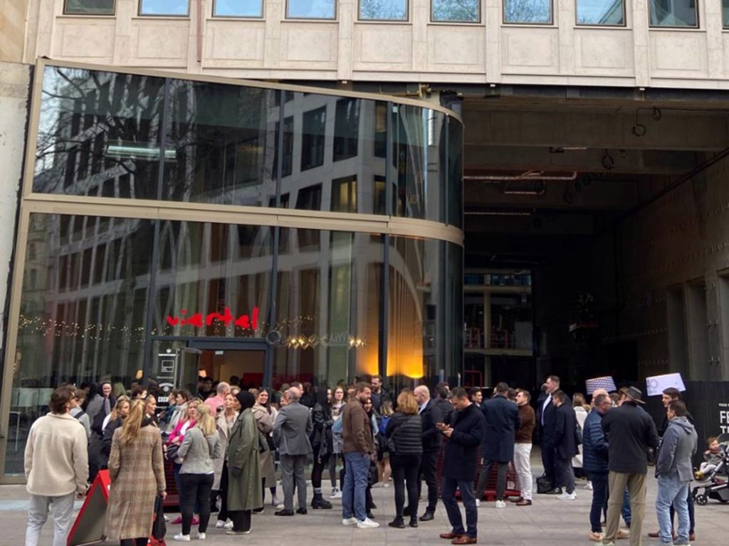Wer das sich im Bau befindende FOUR von außen betrachtet oder schon einmal die Baustelle besucht hat, kann nur ahnen, wie lebendig das Quartier sein wird, wenn die Foodhall, der Supermarkt und die Verkaufsflächen fertig sind. Wer nicht so lange warten will, muss nicht ganz auf Angebote vor Ort verzichten: Ende März hat eine Pop-Up Bar namens Viertel eröffnet. Diese ist modern und minimalistisch eingerichtet. Besucher erwartet eine Mischung aus unbehandelten Betonflächen und warmen Lichttönen. Angeboten werden vor allem Getränke und Speisen aus Frankfurt und der Region. Hinter dem Projekt stehen das Start-up People Going Places sowie die Frankfurter Brauunion in Kooperation mit Groß & Partner.