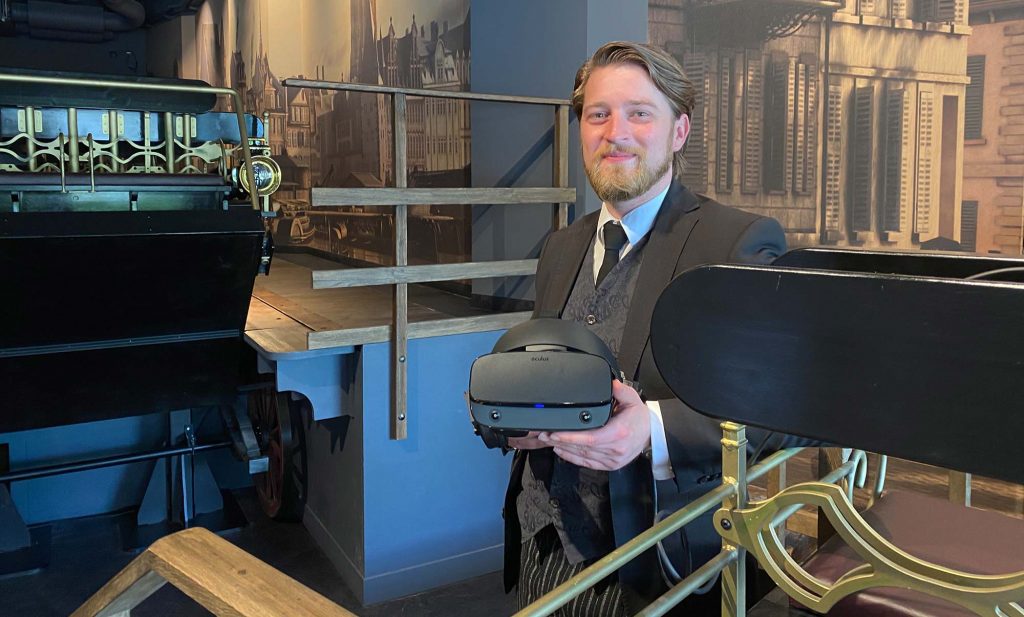 Jonas Rothe: Bei TimeRide können Besucher mitten in die Geschichte in des alten Frankfurts eintauchen – dank Virtual Reality und aufwendigen Dekorationsbauten erleben unsere Gäste das 19. Jahrhundert in der Mainmetropole so, als seien sie selbst dabei gewesen. Möglich wird das auch durch unseren Erzähler, den fiktiven Kaufmann Theodor Riedel. Er verkörpert einen idealtypischen Frankfurter Bürger – an seiner Seite erleben die Gäste dann einen sehr persönlichen Blick auf die prägenden Ereignisse des 19. Jahrhunderts.
