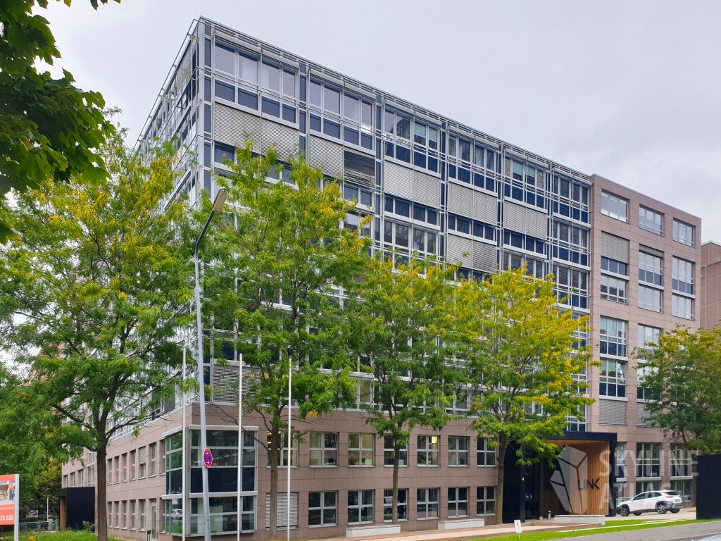 Das Bürogebäude LINK im Stadtviertel City West von Frankfurt am Main. Die City West liegt im Stadtteil Bockenheim in Frankfurt am Main, liegt im Westen der Stadt. Es ist ein spannendes Stadtviertel und hat sich total erneuert. Hier gibt es moderne und schicke Wohn- und Bürogebäude in top Qualität. Zwischen den ganzen Gebäuden befinden sich auch viele grüne Plätze, die man „Pocket Parks“ nennt.