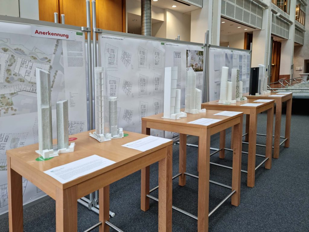 Die Wettbewerbsergebnisse aller teilnehmenden Büros sowie auch der überarbeitete Siegerentwurf von Ferdinand Heide werden vom 06. bis 17. Dezember 2021 im Atrium des Planungsdezernates Frankfurt öffentlich ausgestellt.