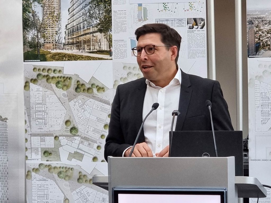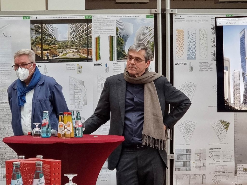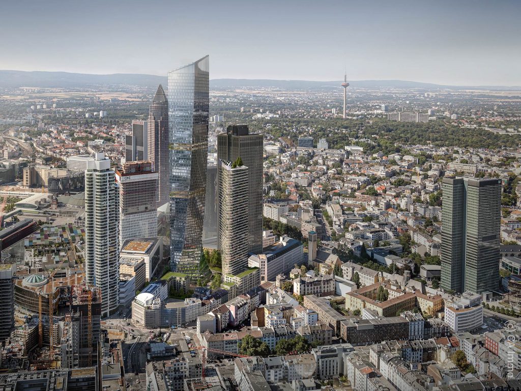 Mike Josef, Planungsdezernent der Stadt Frankfurt, ergänzt: „Das Wettbewerbsverfahren hat ein hervorragendes Ergebnis geliefert, das im Hinblick auf Nachhaltigkeit und Nutzungsmischung überzeugt – sogar in einer der Turmspitzen. Dass von den insgesamt rund 500 Wohnungen 200 öffentlich gefördert sind, kommt der sozialen Durchmischung des gesamten Quartiers zugute. Ich freue mich besonders, dass mit Ferdinand Heide ein Architekt aus Frankfurt das Rennen gemacht hat. Seine beiden Hochhäuser werden hoffentlich schon bald das Hochhauscluster an der Messe städtebaulich ergänzen und mit ihrer architektonischen Ausstrahlung die Skyline bereichern.“
