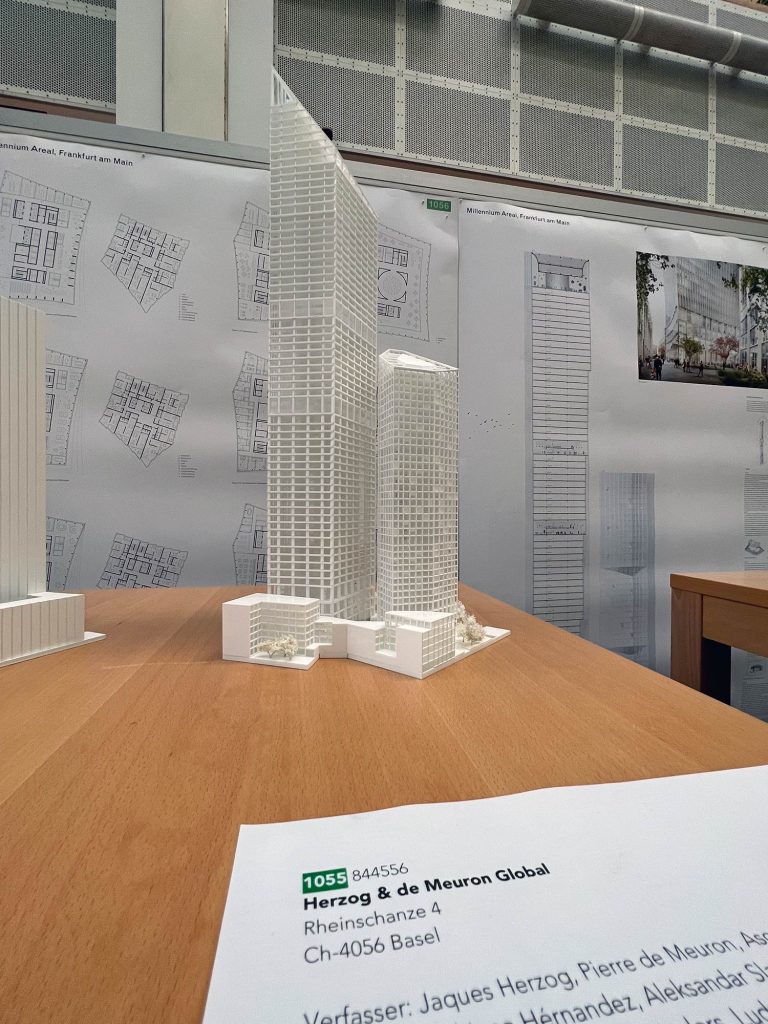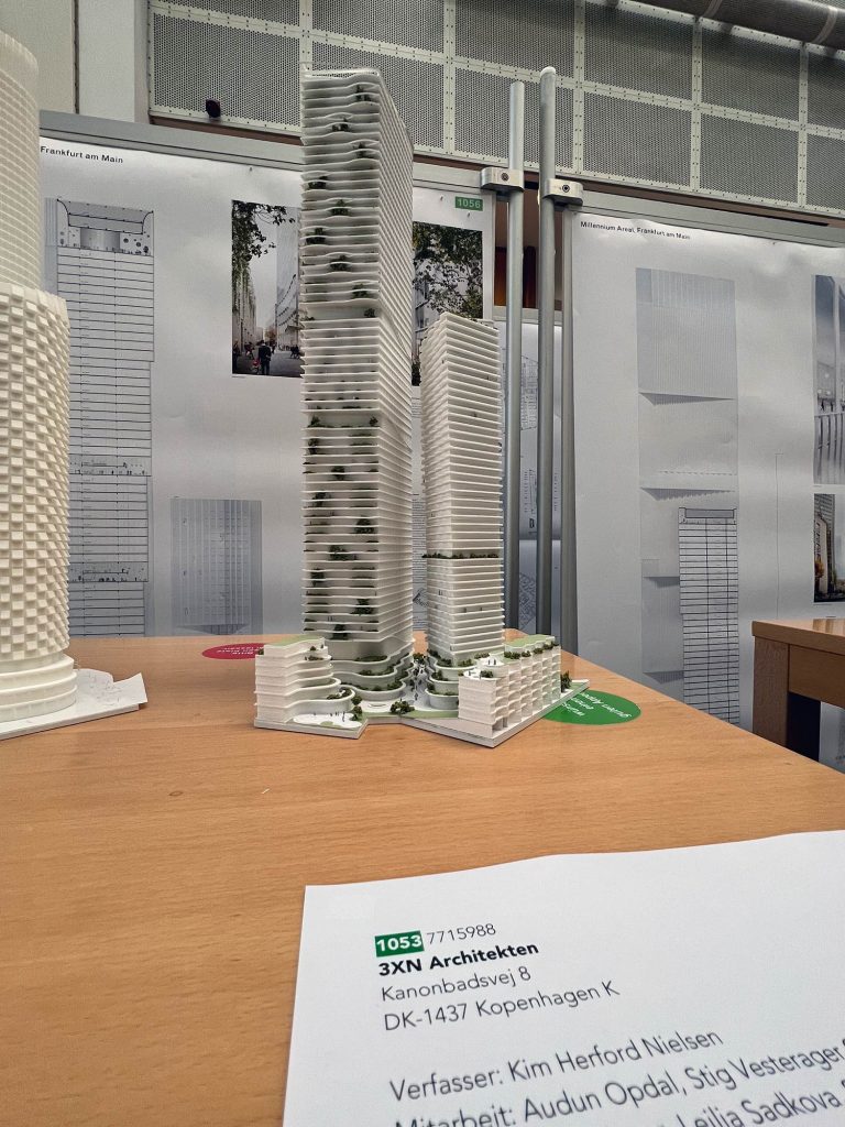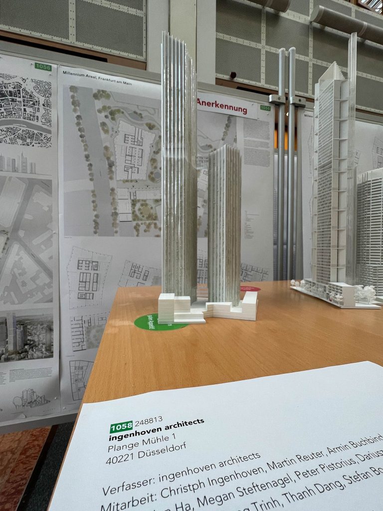 Der international besetzte Realisierungswettbewerb für das Hochhausensemble auf dem sogenannten Millennium Areal in Frankfurt ist entschieden. Das Preisgericht unter Vorsitz des Architekten Prof. Johann Eisele kürte den Entwurf des Frankfurter Architekturbüros Ferdinand Heide zum Sieger des Wettbewerbs. Der zweite Platz ging an das Architekturbüro Cobe aus Kopenhagen. Anerkennungen erhielten zudem die Büros David Chipperfield Architects (Berlin/London) und Schneider + Schumacher Architekten (Frankfurt am Main).