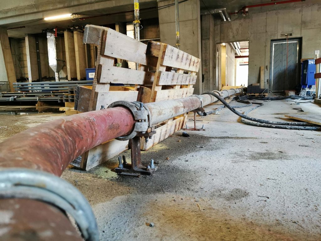 Mit Energie wird der Senckenberg Turm später über die Netze der Mainova versorgt. Die Fernwärme sorgt dafür, dass die installierte Heizung in den Kühl/Wärme-Decken reibungslos funktioniert. Die Kälte wird später über zwei Kältemaschinen erzeugt, die sich auf dem Dach befinden werden.