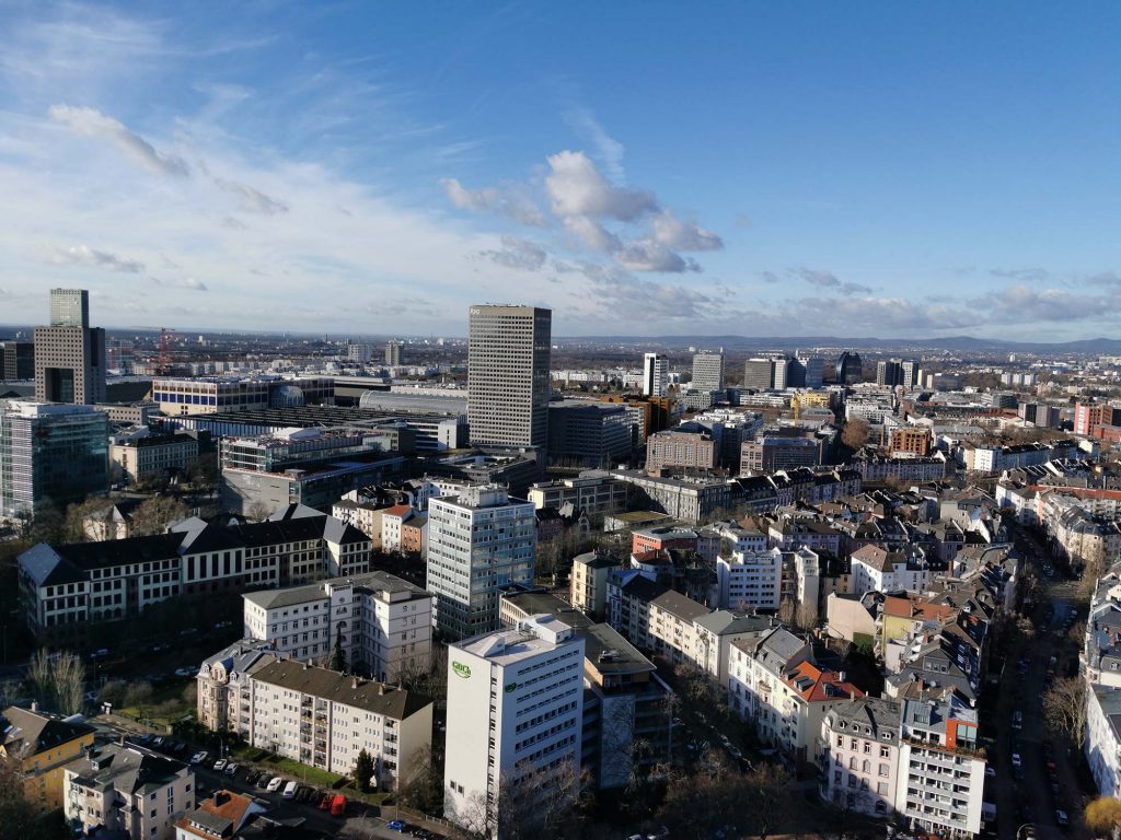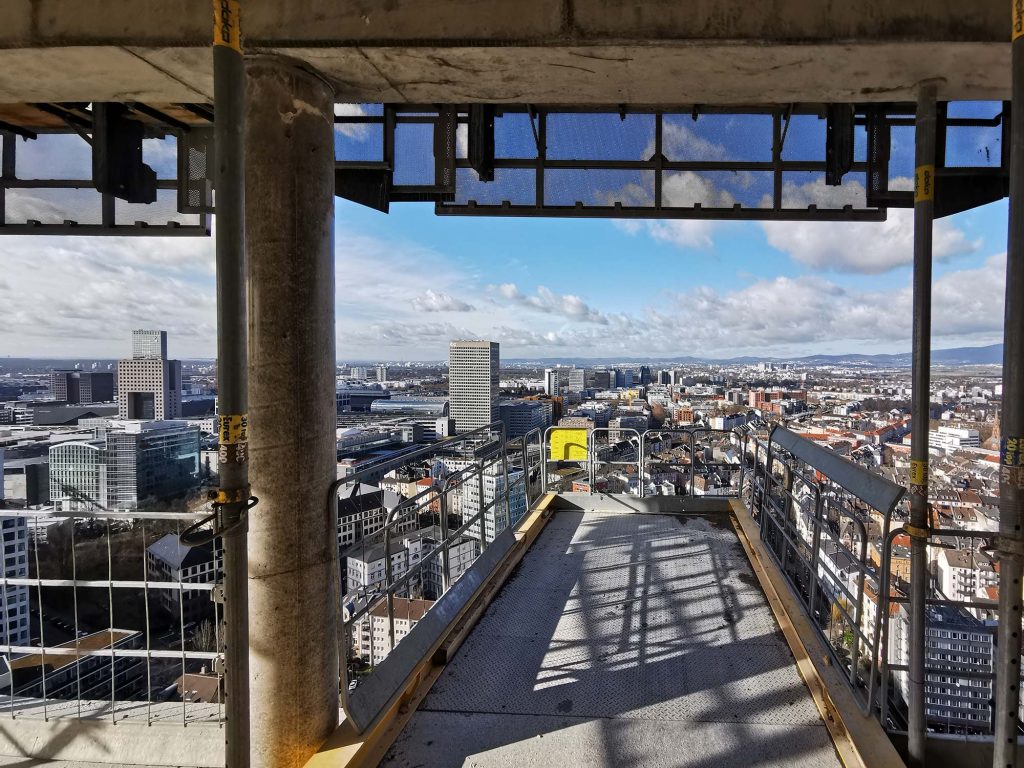 Von hier oben aus bot sich ein toller Blick über die Stadt: In der einen Richtung lagen MesseTurm und Westend Gate, in der Ferne sah man das Messegelände sowie die City West. Auf der anderen Seite lag das schließlich das Westend.