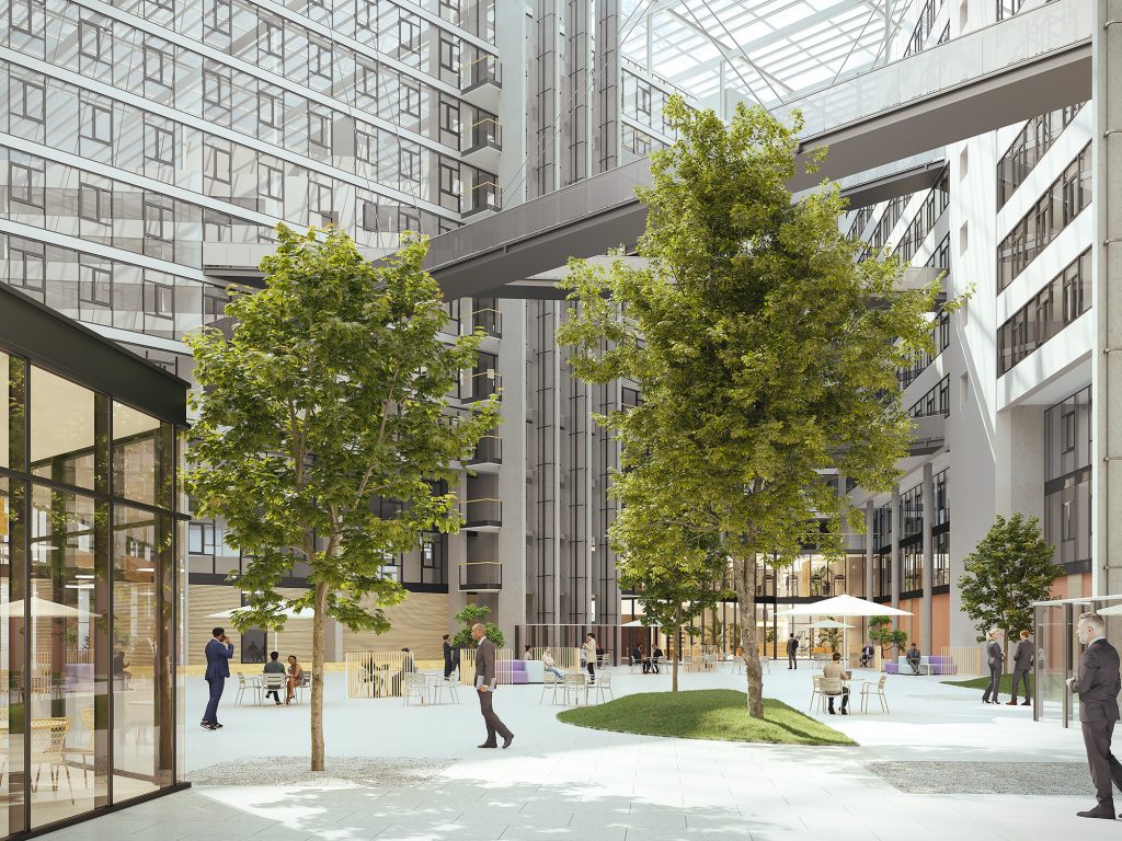 Die ehemalige Kantine wird umgebaut und für die Öffentlichkeit sowie die im Gebäude arbeitenden Menschen neu aufgestellt. Hierzu gehört ein Barista, dessen Angebot allen zur Verfügung steht. Teil des Gesamtkonzepts ist ein Fitnessstudio, das auf 1.650 Quadratmeter Fläche entsteht und ebenfalls öffentlich nutzbar sein wird. Auch mietbare, unterschiedlich große Konferenzräume sowie grüne Inseln als Treffpunkte sind Komponenten des neuen PRISMA.