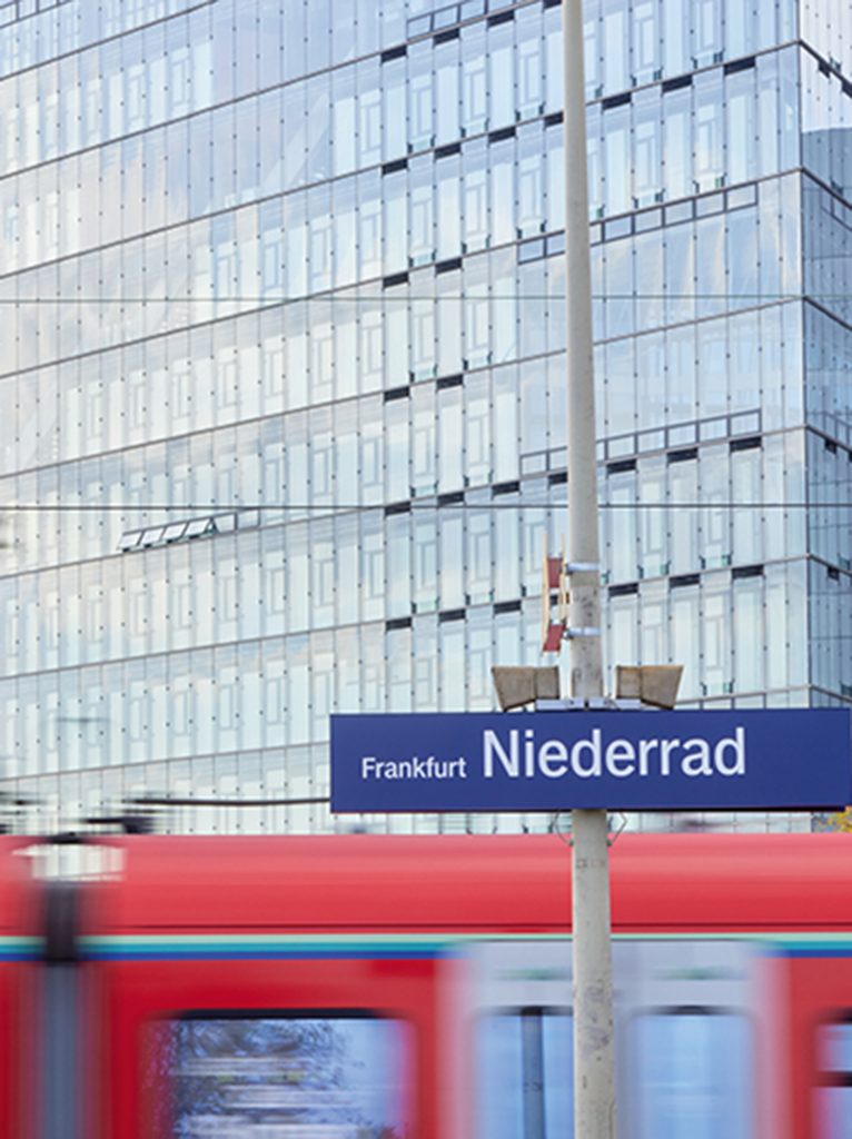 Die leichte Erreichbarkeit des PRISMA macht das Gebäude ebenfalls sehr attraktiv, da es direkt an der S-Bahn-Station Niederrad liegt. Zur Innenstadt, zum Hauptbahnhof und zum Flughafen sind es mit der Bahn jeweils weniger als 10 Minuten. Geschäfte, Stadtwald und Mainufer erreicht man darüber hinaus bequem zu Fuß.