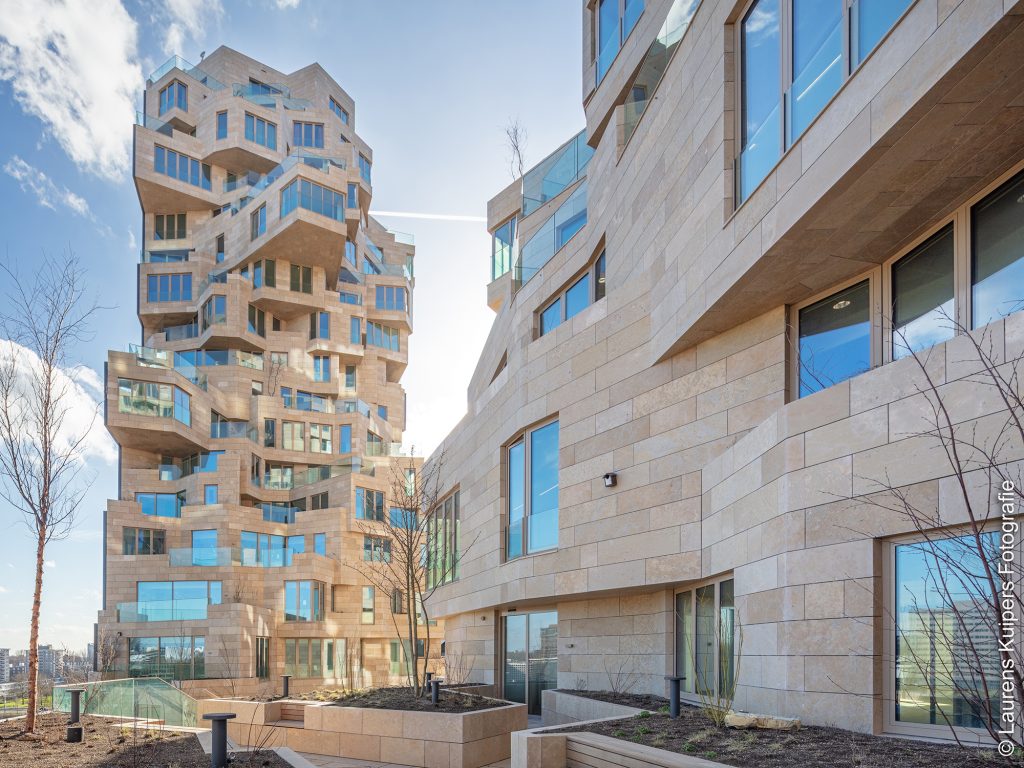 Das sogenannte Valley an der Amsterdamer Südachse ist ein architektonisches Highlight, das 2021 fertiggestellt wurde. Es besteht aus drei Hochhäusern mit Höhen von 103, 80 und 70 Metern. Die Gebäude sind durch ein grünes, terrassiertes Tal miteinander verbunden. Dieses naturinklusive Element ist öffentlich zugänglich und integriert Wasserflächen sowie großzügige Terrassen. Unter den Türmen befindet sich ein dreistöckiges Parkhaus für 375 Fahrzeuge, während die unteren Stockwerke Büros, Gastronomie, Einzelhandel und kulturelle Einrichtungen integrieren. Ab dem achten Stock befinden sich insgesamt 200 luxuriöse Apartments. Der Projektentwickler EDGE verband dabei urbanes Wohnen mit nachhaltiger Bauweise und natürlichen Materialien, während Drees & Sommer das Projektmanagement insbesondere bei Planänderungen, Abnahmen und der Übergabe der Apartments unterstützte.
