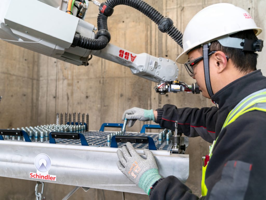 Das Schindler R.I.S.E-System ist viel schneller als die herkömmlichen Installationsmethoden, da es unabhängig arbeitet und keine Steuerperson erforderlich macht. Das System muss hierzu im Aufzugsschacht installiert werden und arbeitet dann autonom rund um die Uhr, bis alle Ankerbolzen eingebaut sind. Zur Qualitätskontrolle und Unterstützung bleibt eine Schindler R.I.S.E-Steuerperson für die Dauer der Installation vor Ort anwesend. Das Montageteam wird durch diesen Vorgang von den körperlich anstrengenden, sich laufend wiederholenden und sehr zeitaufwändigen Aufgaben des Bohrens und Ankerbolzensetzens entlastet. Dies erhöht die Sicherheit in einer eindeutig anspruchsvollen Arbeitsumgebung maßgeblich. Der Roboter arbeitet kontinuierlich mit anderen digitalen Anwendungen im Hochbau zusammen und kann Daten direkt aus dem digitalen Gebäudemodell abrufen. Informationen und Daten aus jedem einzelnen Schritt der Installation werden aufgezeichnet und automatisch im digitalen Modell des Gebäudes abgespeichert bzw. ausgetauscht, um später in der Bau- und Wartungsphase des Projekts darauf zurückgreifen zu können.