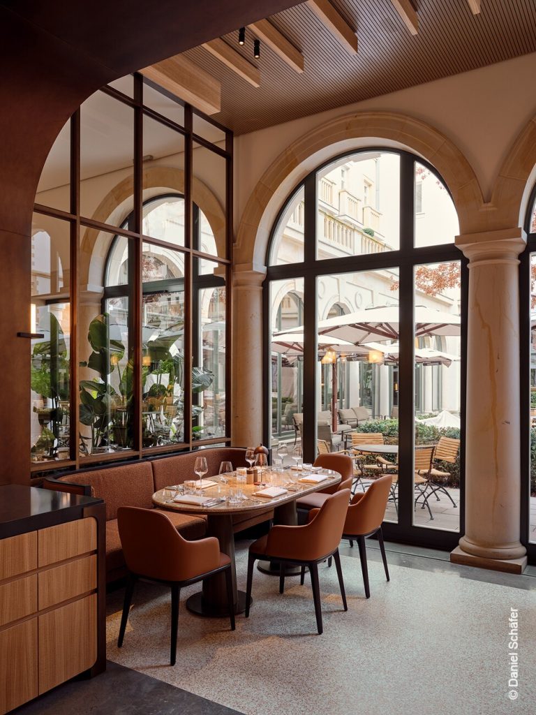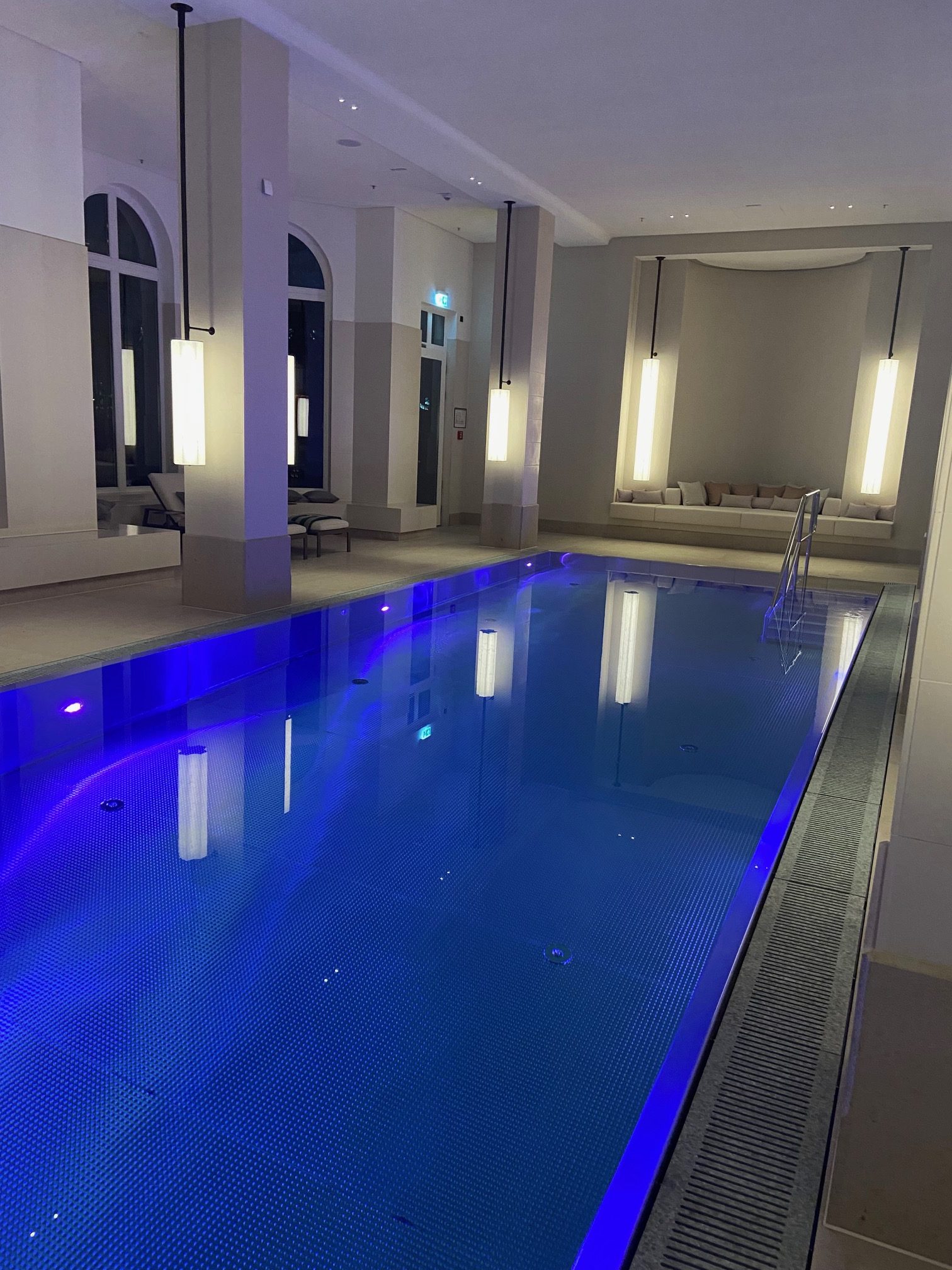 Der begrünte und jetzt weihnachtlich beleuchtete Innenhof ist das Herzstück des Hauses, der Lobby, Gastronomie und Aufenthaltsbereiche verbindet. Im gesamten Hotel erklingt dezent im Hintergrund eigens dafür komponierte Musik. Für das komplett neu renovierte Spa mit 14-Meter-Indoor-Pool, Saunen und Behandlungsräumen kann man auch eine Tageskarte buchen. Verschiedene edelste Veranstaltungsräume, für Meetings, Business-Events und private Anlässe, wie auch eine orange Zigarren-Lounge und ein umfangreicher Weinkeller erweitern das Angebot des Hotels.