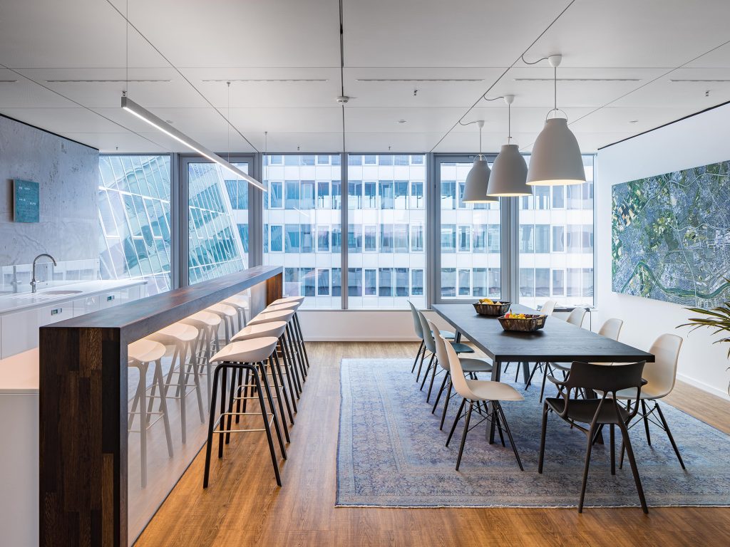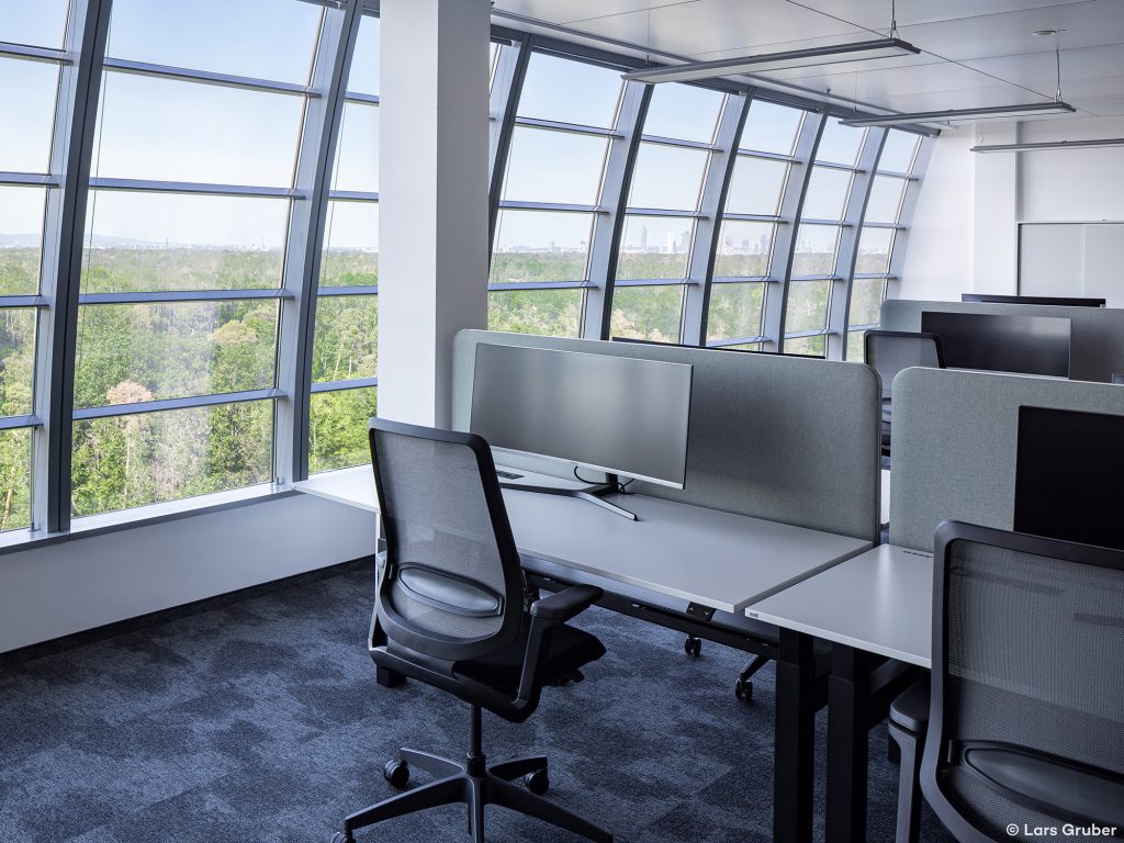 - Flexible und auf das eigene Branding anpassbare Büroflächen mit natürlichem Licht und biophilen Design