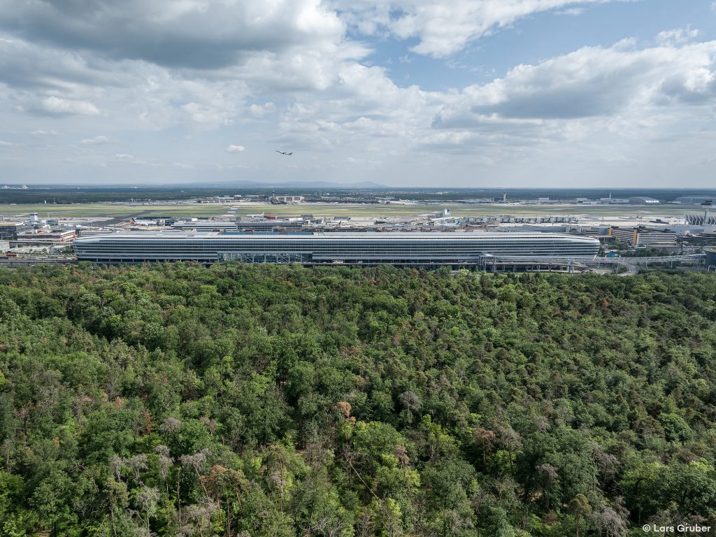 Das bis zu 45 Meter hohe Bürogebäude mit 11 Stockwerken wurde zwischen 2007 und 2011 nach den Plänen des Frankfurter Architekturbüros JSK über dem bestehenden Fernbahnhof am Frankfurter Flughafen gebaut und ist durch einen Verbindungsgang direkt an das Terminal 1 des Flughafens angebunden.