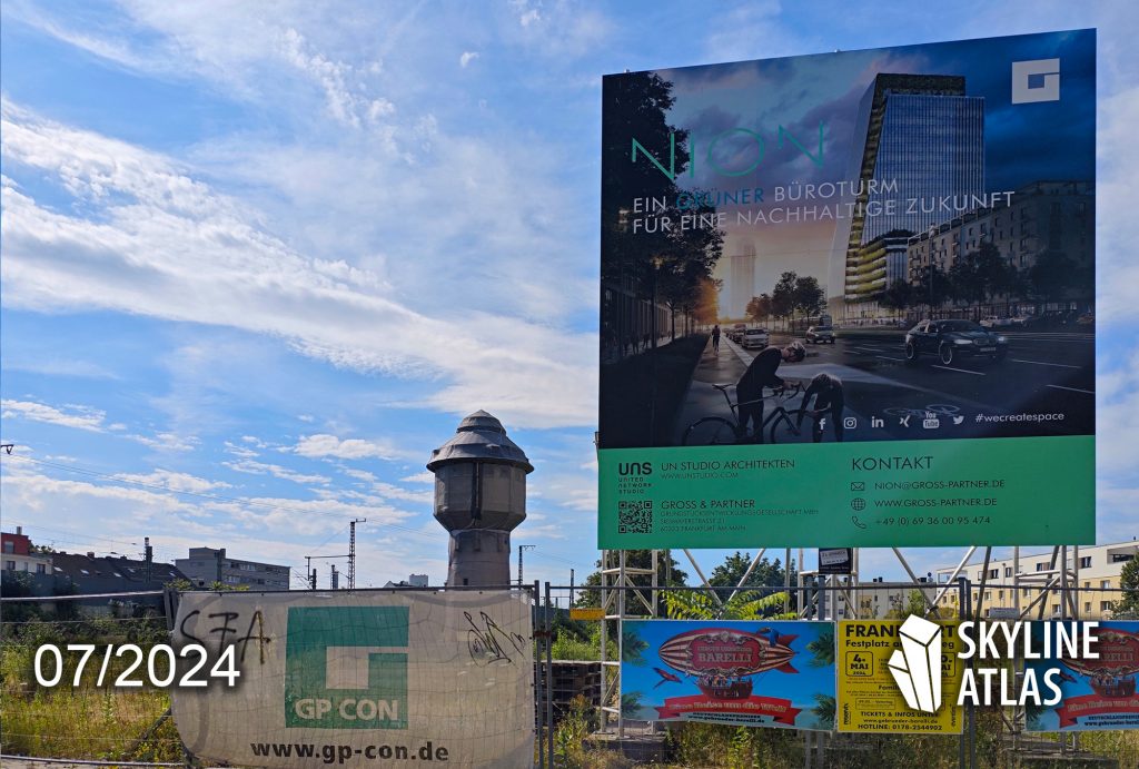 Nach einige Verzögerungen wird auf der Baustelle des Sparda Bank Tower wieder nach oben gebaut. Bis 2025 soll das Hochhaus laut Bauherr schon fertiggestellt sein. Unser Premiumpartner Schindler wird hier die Aufzüge einbauen und betreiben. Gegenüber liegt das Grundstück des NION. Der Wasserturm auf dem Gelände ist mittlerweile mit Fangnetzen versehen. Mehr hat sich hier allerdings seit letztem Jahr nicht getan.