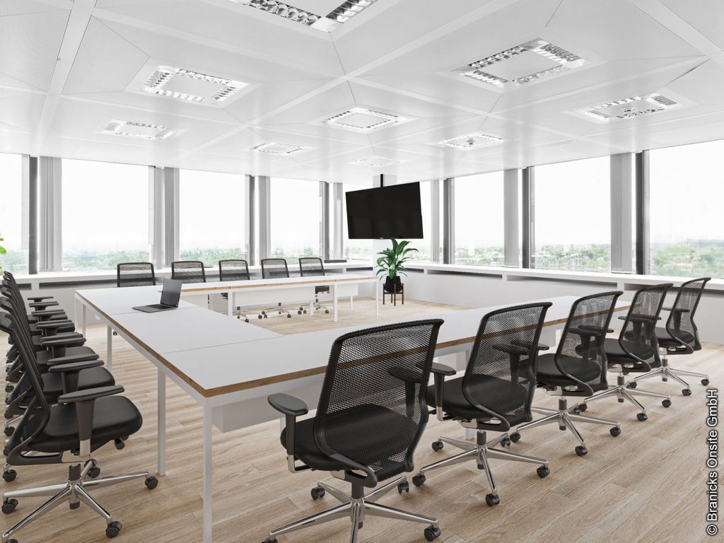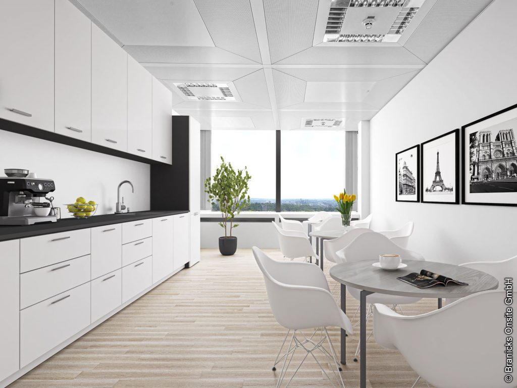 Zwei Teeküchen pro Stockwerk fördern den Austausch unter den Mitarbeitern. Zudem gibt es komfortable Lounges zur Entspannung. Hier können Sie sich ein Bild von den Regelgeschossen machen.